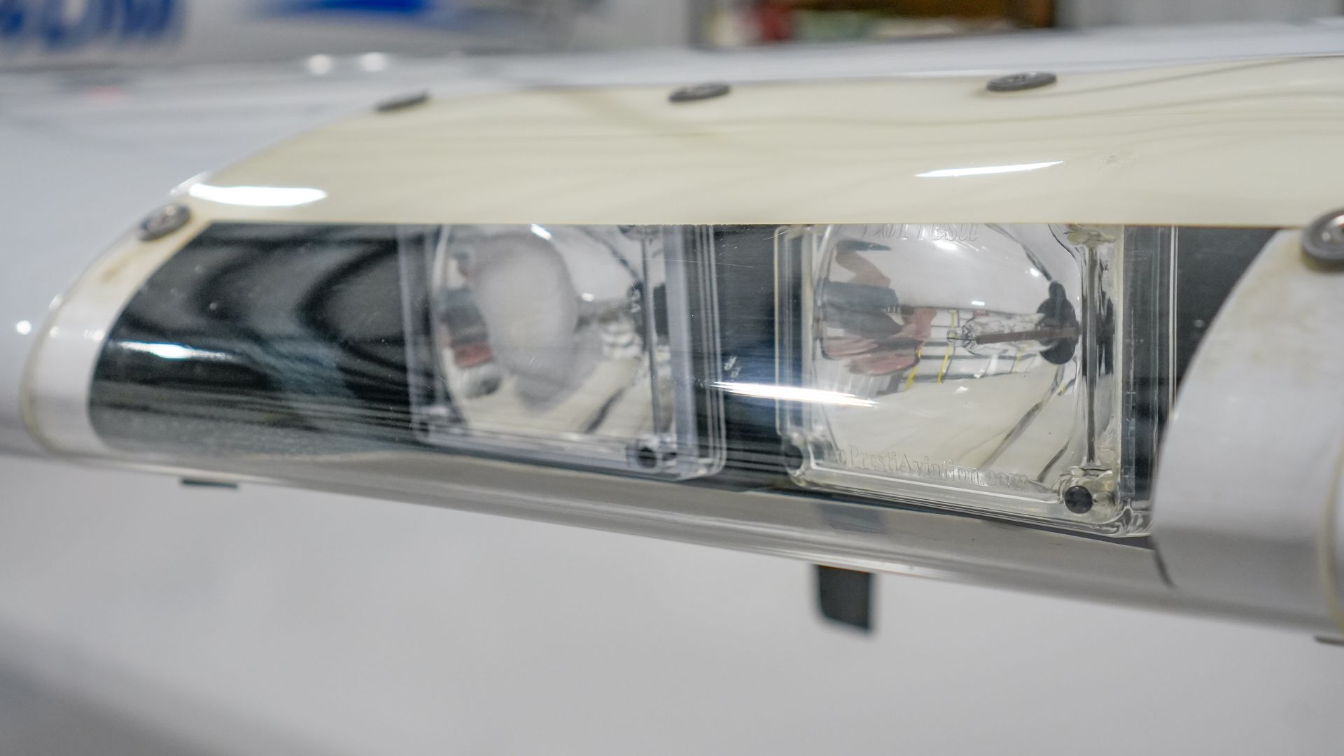Installed Boom Beam light kit and repaired landing light lens receptacles. (April 2023)